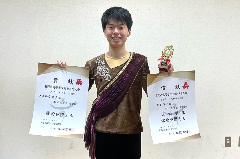 11月3日(月)に岡谷市やまびこスケートの森アイスアリーナにて長野県総合体育大会フィギュアスケート競技が行われ、1Hの上條さんが男子高校生の部で1位を獲得しました!