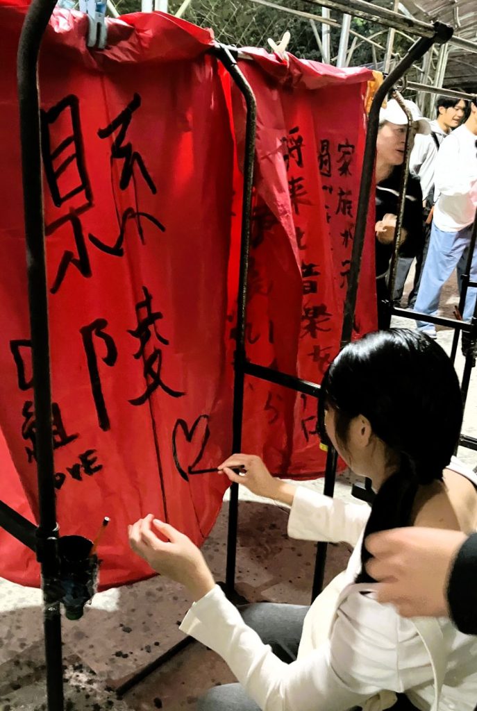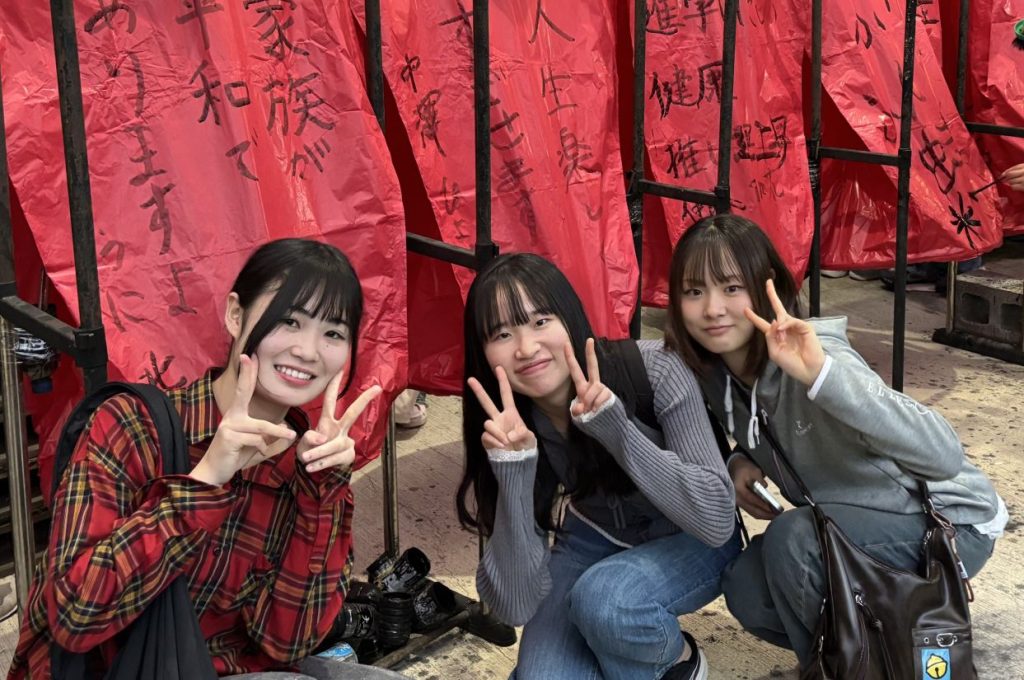 3日目の午前中はB&S(Brothers and Sisters)プログラムで、日本語を学んでいる台湾の大学生に台北市内の様々な場所に連れて行ってもらい、抱えきれないほど多くのお土産を買っている生徒もいました。午後にはクラス別フィールドワークに行き、CDGH組は九份・十份へ、EF組はマングローブがあるという淡水に行きました。淡水は河口に位置し、海に近いため潮風を感じられたそうです。九份・十份もこの時期は雨が多い地域ですが、小雨に降られた程度で済み、それぞれの願いを込めた大きなランタンを上げてきました。