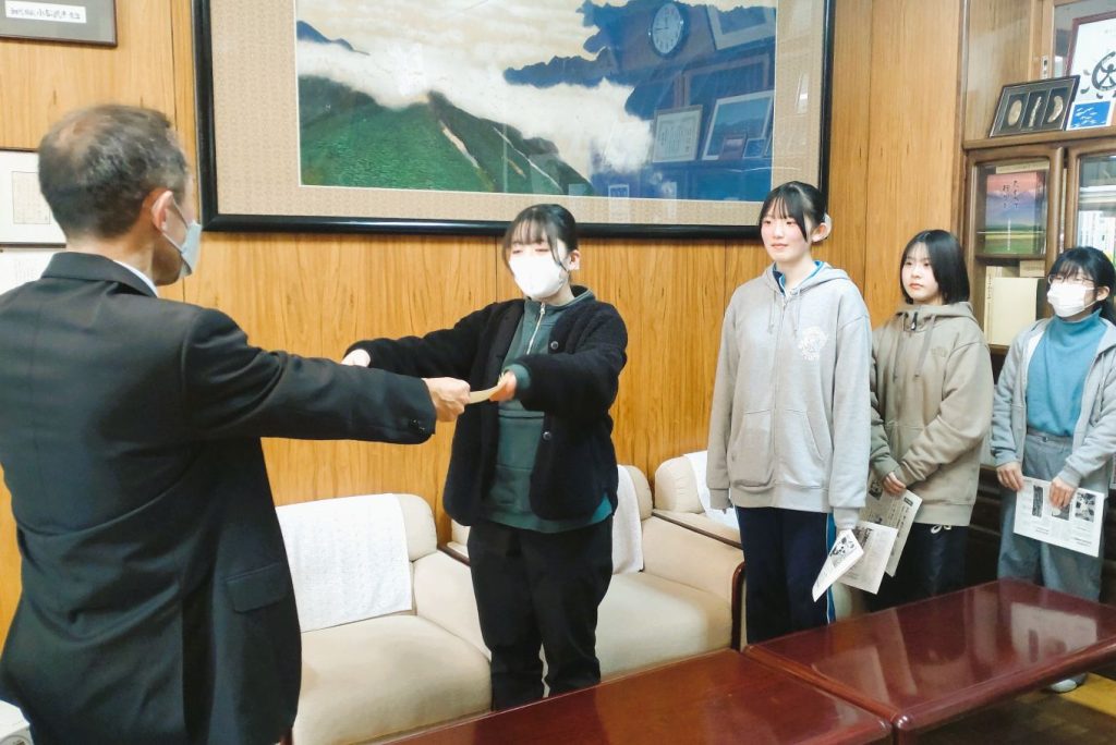 審査対象は昨年度10月から今年度9月までに発行した全紙面で、特に複数号にわたる特集記事などを評価いただきました。昨年度中は社会保障制度をめふる3月にわたる特集記事を展開。大学の先生方に大変お世話になりました。今年度に入ってからは「戦後80年」を特集し、縣陵と戦争をテーマに、戦争を経験した同窓生の先輩のお話を聞きにいったり、現在の縣陵生の活動を取材したり、松本市の事業として広島へも取材に行ったりしました。校内の話題では、今年度自動販売機に新たに入ったある清涼飲料水をめぐって、その受け止められ方などを複数号にわたって取材しました。