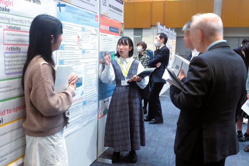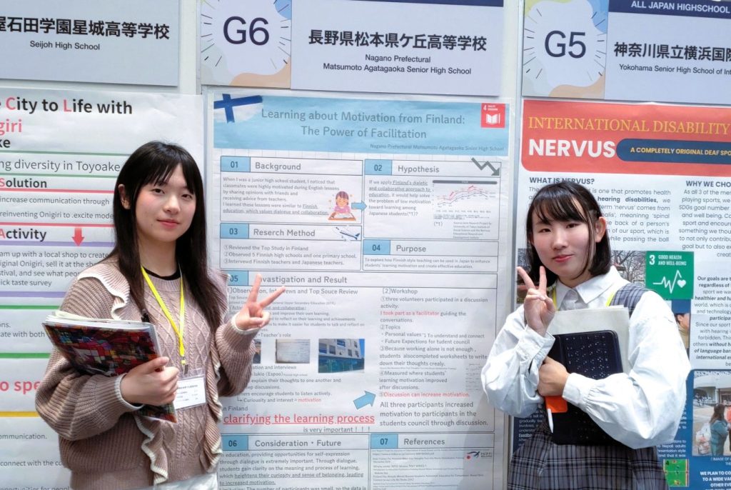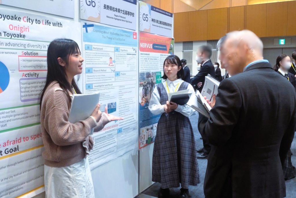 ポスターセッションでは、フィンランドから学ぶファシリテーションの力をテーマに、英語でプレゼンしました。堂々たる発表に、審査員の方との英語でのやり取りが大いに盛り上がって、移動時間ぎりぎりまで質問が続いていました。2人が前日の宿舎でも納得のいくよう遅くまで練習し、真剣に取り組んだ結果だと思います。