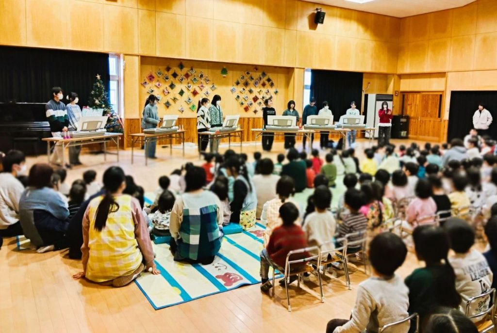 12月5日(金)2限に2年音楽選択者であがた保育園さんにて演奏発表を行ってきました。今年も園児さんのかわいさに打ちのめされ、「もっといたい〜!」と後ろ髪をひかれながら帰ってきました。園長先生のアンコールにお応えするうちに予定より弱冠滞在時間が延びてしまいました。